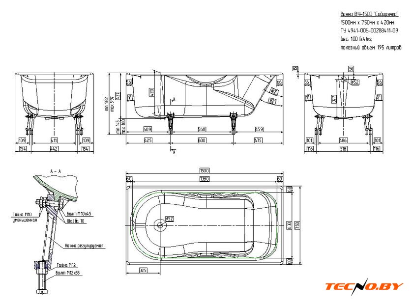 Данная ванна является не только стильным, но и практичным выбором. Она имеет длину 150 см и ширину 75 см, что позволяет комфортно разместиться одному человеку. Углубление с полезным объемом в 196 литров обеспечивает достаточно места для расслабляющей ванны. Ванна весит 100 кг, что гарантирует ее устойчивость и надежность в эксплуатации.