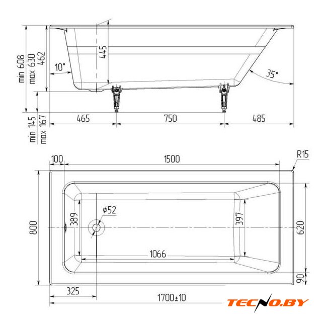 Размеры 170х80 см обеспечивают комфортное принятие водных процедур для одного человека, а полезный объем 232 литра позволит погрузиться в воду с головой, создавая эффект легкости и невесомости. Высота ванны составляет 60.8 см, что делает ее удобной для людей разного роста. Глубина в 44.5 см идеально подходит для полного погружения, создавая одно из важнейших условий для эффективного отдыха и расслабления.