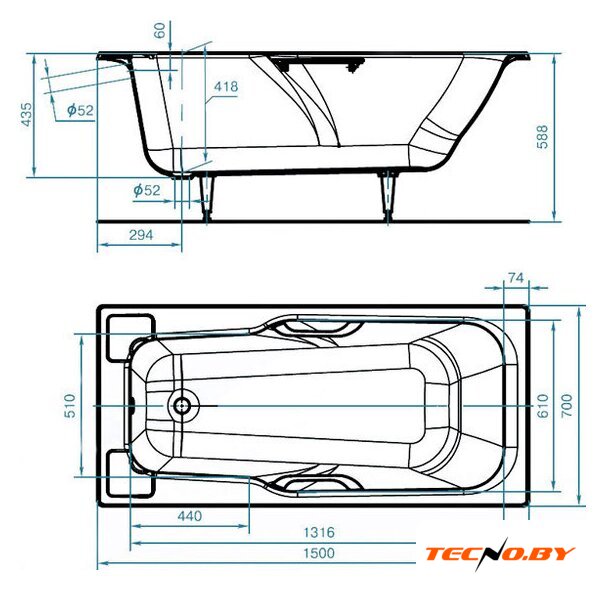 С шириной 70 см и длиной 150 см, данная модель предлагает удобный и эргономичный обьем, равный 153 литрам. Высота в 44 см позволяет с комфортом погружаться в воду и также удобно и легко выбираться из ванны. Ванна весит 91 кг, что свидетельствует о ее прочности и устойчивости.