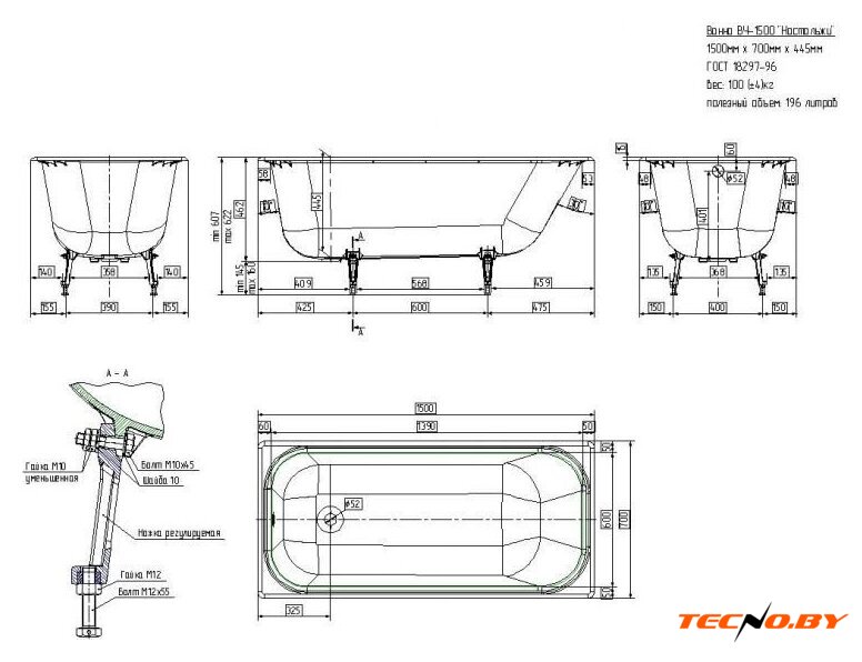 Она весит всего 100 кг, что делает ее более практичной при установке, чем многие другие чугунные аналоги. Это облегчает монтаж и транспортировку, а также избавляет от риска излишней нагрузки на пол. Однако не забудьте, что необходимо приобрести сифоны для организованного водоотведения, так как они не входят в комплект. 🚿