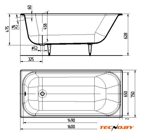 Ванна оснащена устойчивыми ножками, которые обеспечивают необходимую высоту и стабильность. Однако важно помнить, что в этой модели отсутствует противоскользящее покрытие дна, поэтому рекомендуется использовать дополнительные коврики или покрытия для предотвращения случайных скольжений.