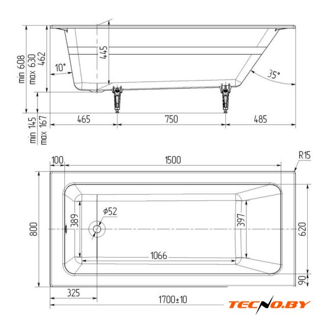 С размерами 170x80 см и глубиной ванны 44.5 см, эта ванна предлагает оптимальное соотношение длины и ширины, обеспечивая комфортное использование. Полезный объем в 232 литра позволяет вам наслаждаться расслабляющими ваннами, не беспокоясь о недостатке места для маневров.
