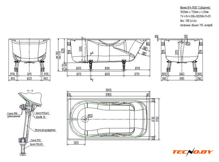 Элегантные параметры этой ванны включают длину в 150 см и ширину в 75 см, что в сочетании с глубиной 44 см обеспечивает достаточный внутренний объем в 195 литров для полного погружения и расслабления. Высота ванны составляет 58 см, что делает ее удобной в доступе как для взрослых, так и для детей.