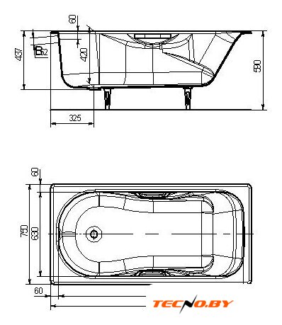 Ванна имеет размеры 150 см в длину, 75 см в ширину и 44 см в высоту (43.7 см). При полезном объеме 195 литров, она обеспечивает достаточное пространство для вашего комфорта. Весит ванна 94 кг, что делает ее устойчивой и надежной после установки.