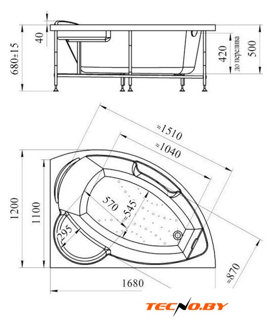 угловая, акрил, объем: 190 л