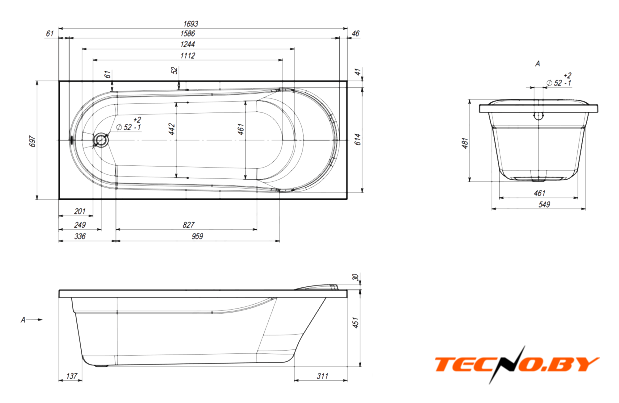 Идеальные размеры ванны 169.3 см в длину и 74.7 см в ширину делают ее подходящей для большинства ванных комнат. С глубиной 45.1 см и полезным объемом 217 литров, ванна предоставляет достаточно места для комфортного и расслабляющего купания в одиночестве. Благодаря толщине стенок в 5 мм, ванна сохраняет тепло, что позволяет вам наслаждаться приятными водными процедурами дольше. 🛀