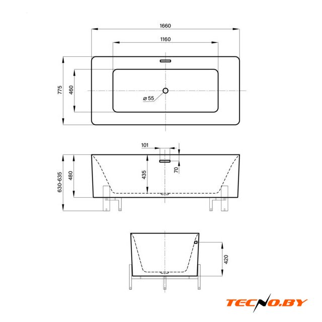 нестандартная, литьевой акрил, отдельностоящая, объем: 271 л