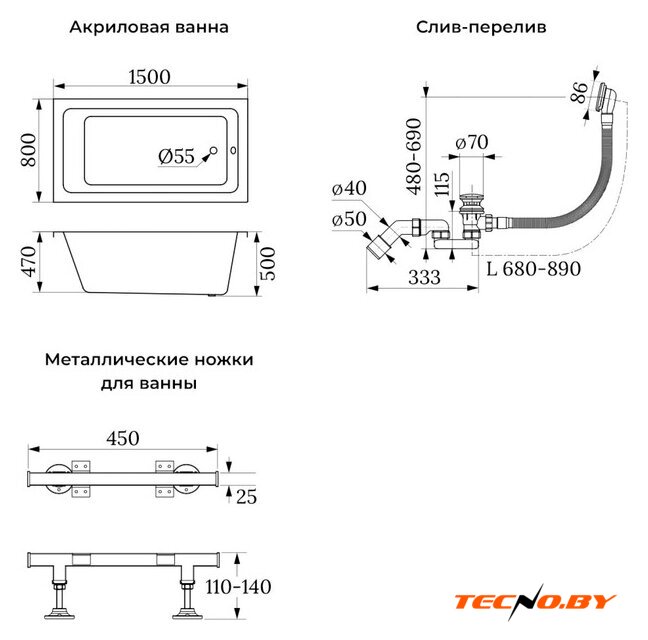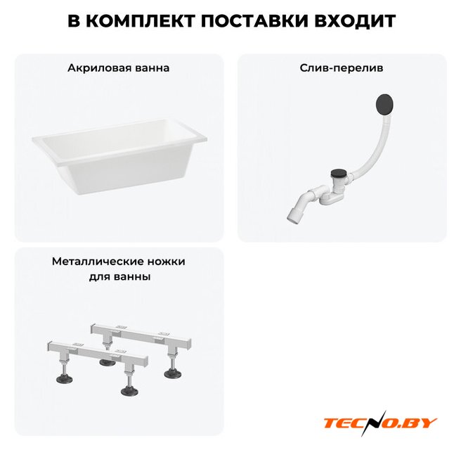 В комплекте с ванной поставляется сифон (слив-перелив) матового черного цвета, который подчеркнет стиль и завершенность внешнего вида. Подголовник можно приобрести отдельно для создания дополнительного комфорта. Ванна не входит в комплект с душевой шторкой и декоративным экраном, но ее универсальный дизайн позволяет вам легко подобрать дополнительные аксессуары по своему вкусу.