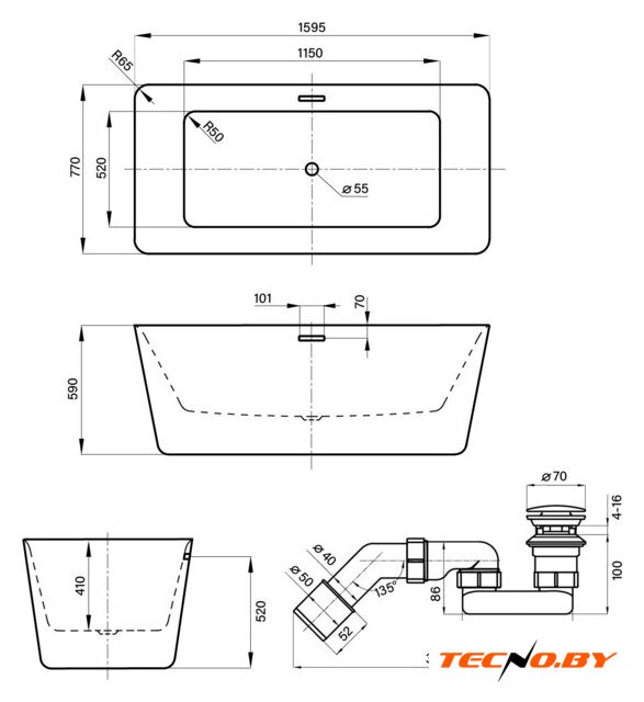 Эта ванна является отдельностоящей, что дает вам свободу выбора места ее установки в вашей ванной комнате. Комплект включает в себя ножки, которые обеспечивают устойчивость конструкции. Несмотря на отсутствие встроенных ручек, эргономичный дизайн и оптимальная глубина 41 см позволяют легко встать или сесть в ванну.