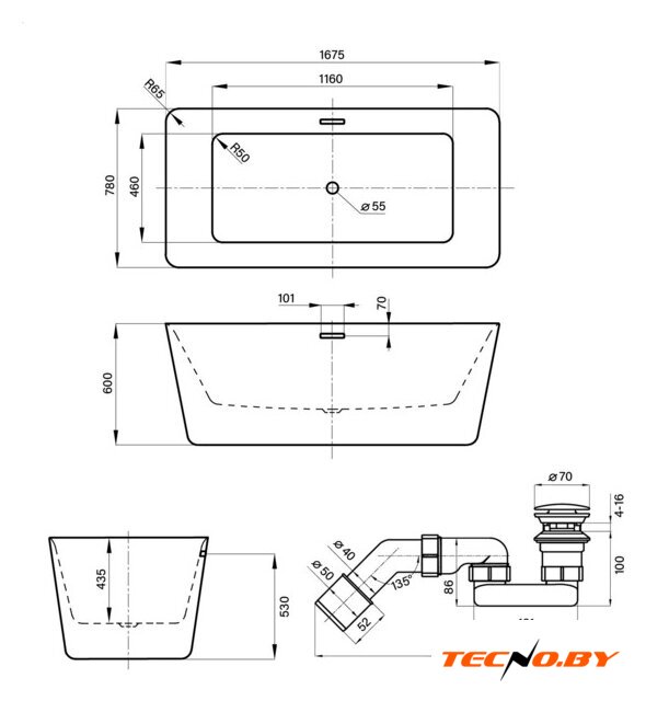 Отдельностоящая конструкция ванны позволяет разместить ее в любом месте вашей ванной комнаты, придавая интерьеру особую свободу в планировке. Ножки, входящие в комплект, обеспечивают устойчивость и простоту установки. 🛁