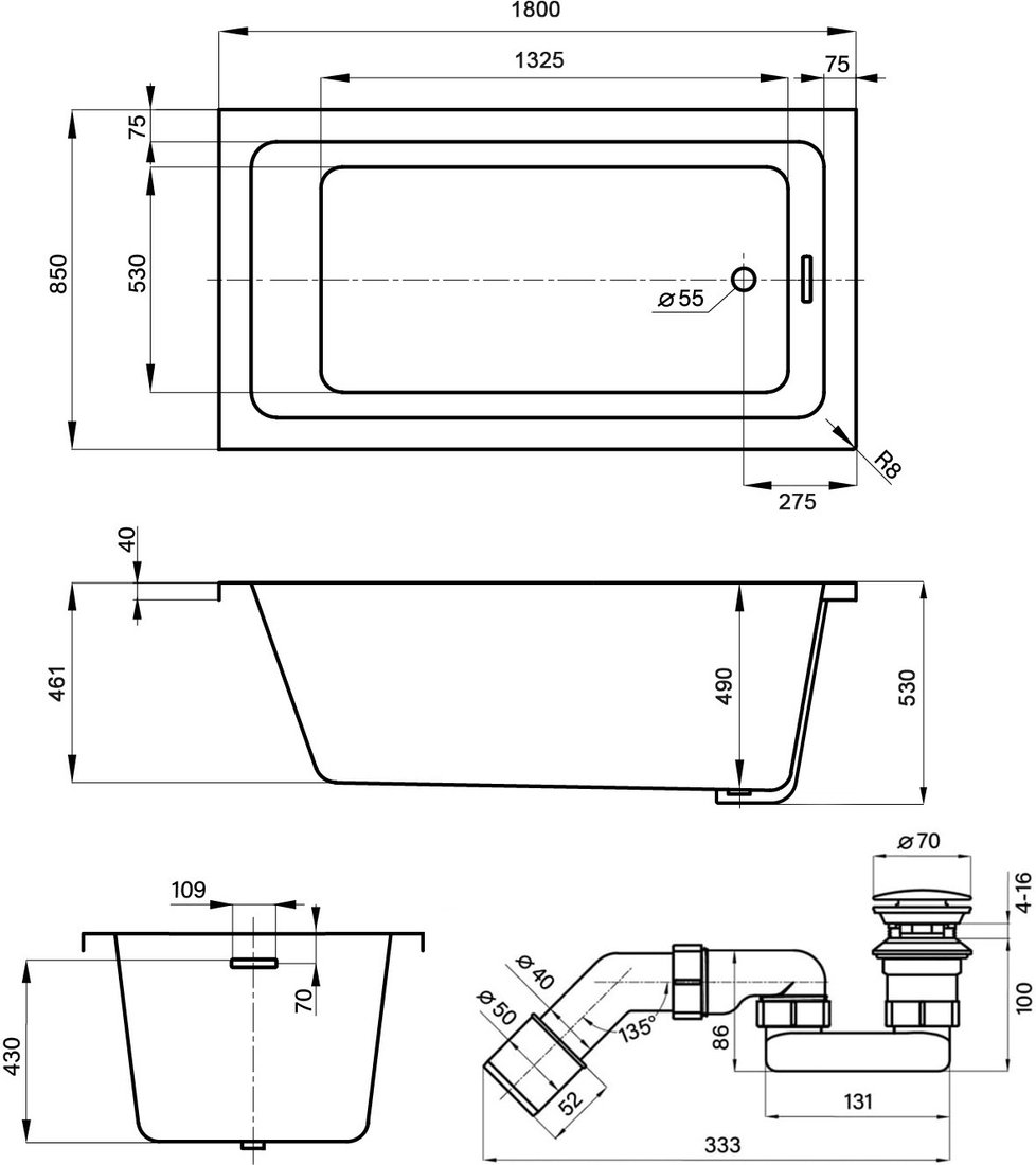 | Сифон (слив-перелив) | есть |