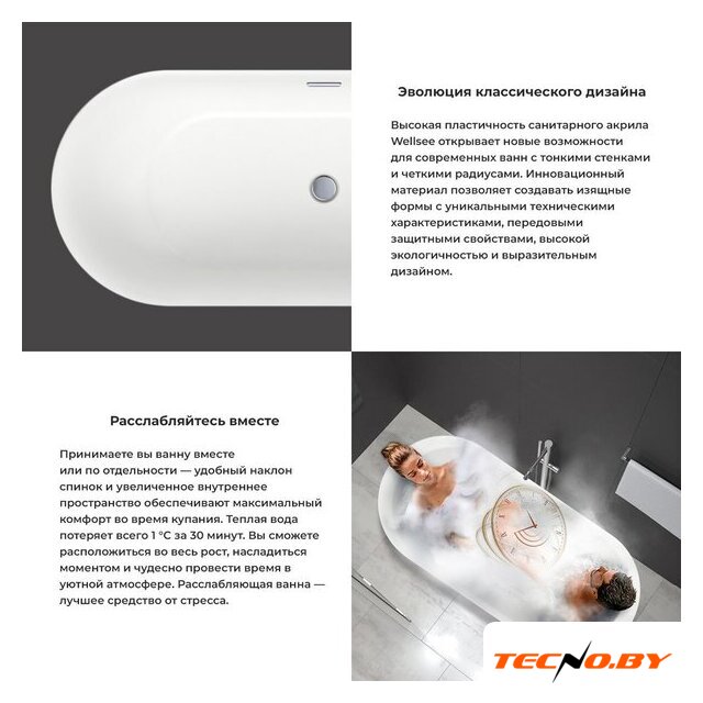 овальная, литьевой акрил, отдельностоящая, объем: 210 л