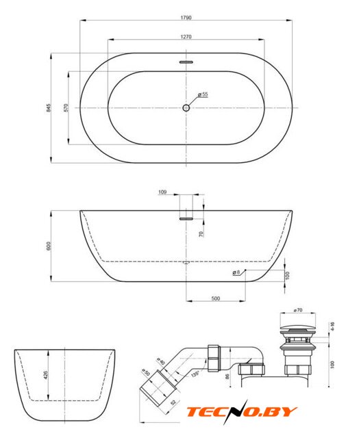 | Сифон (слив-перелив) | есть |