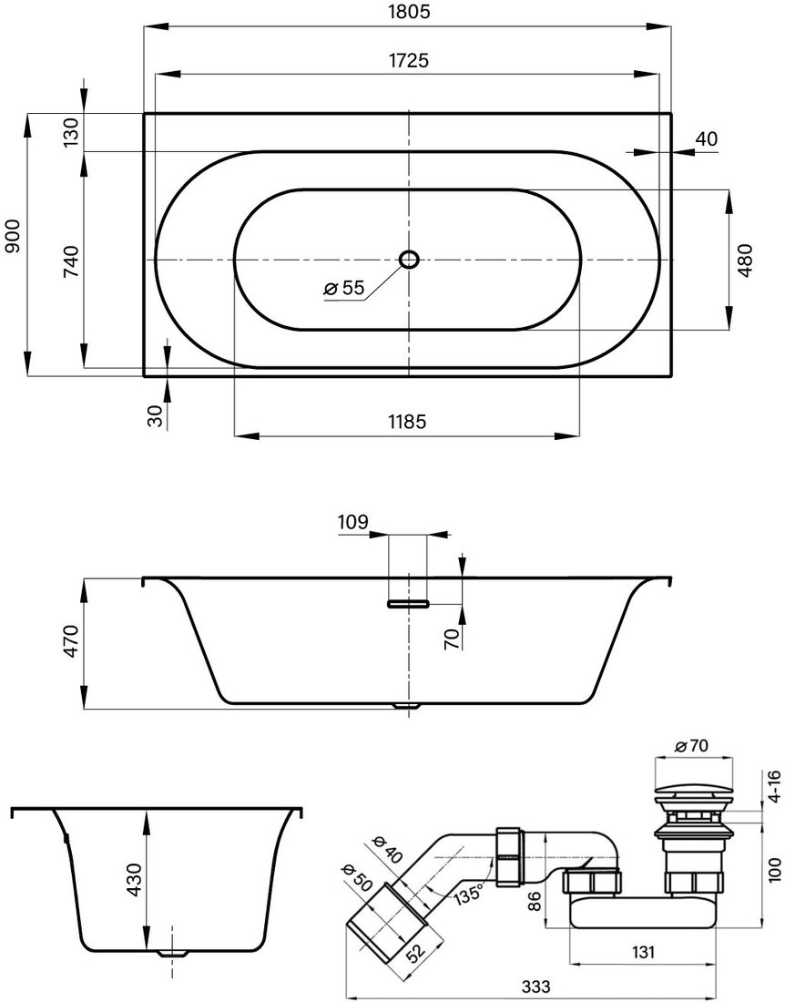 | Глубина ванны | 43 см |