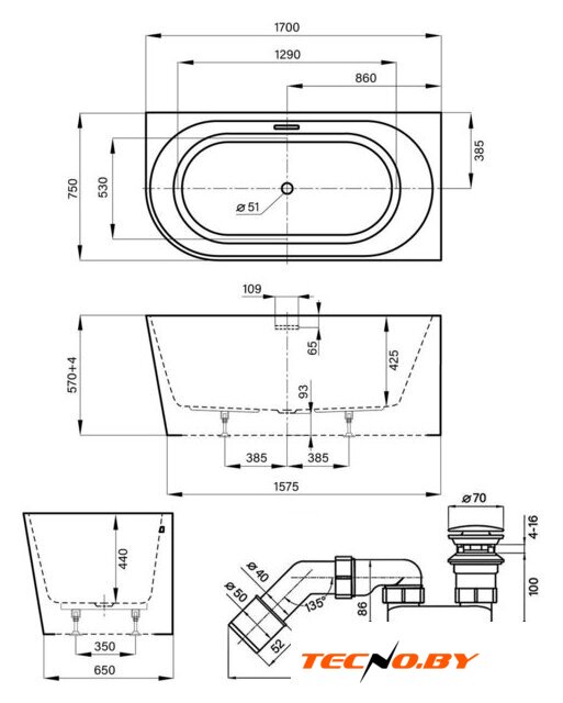 170x75 см, объём: 285 л по цене 1 755,60 руб.