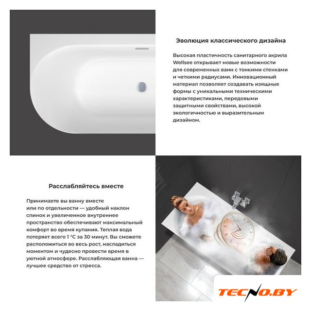 прямая, литьевой акрил, отдельностоящая, объем: 268 л