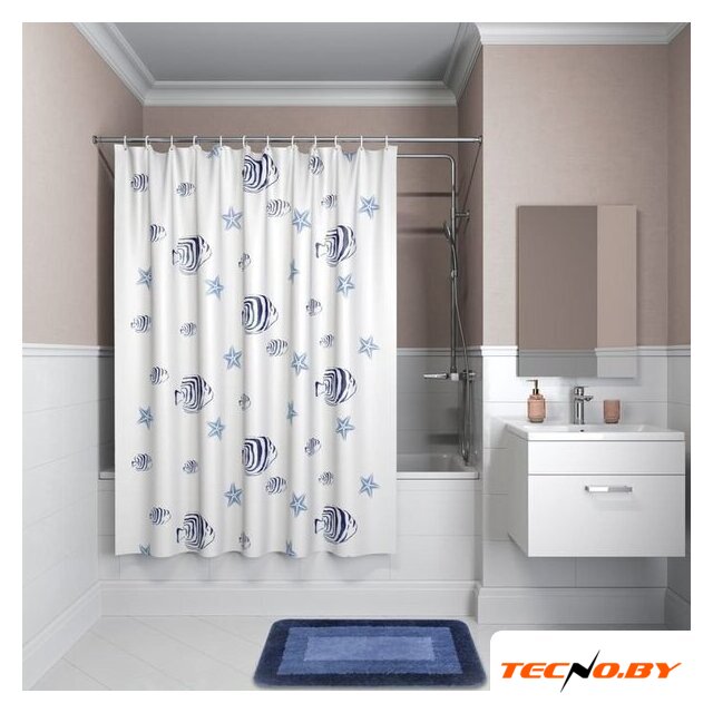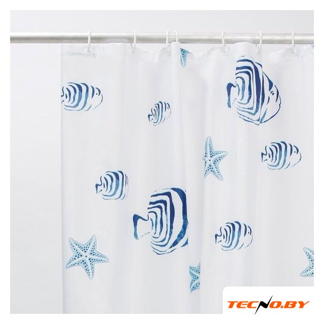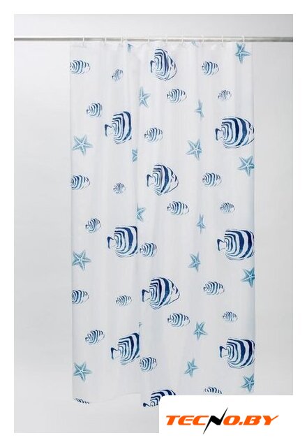 форма прямоугольная, материал шторки полиэстер, кольца в комплекте, 180х200 см, рисунок/синий