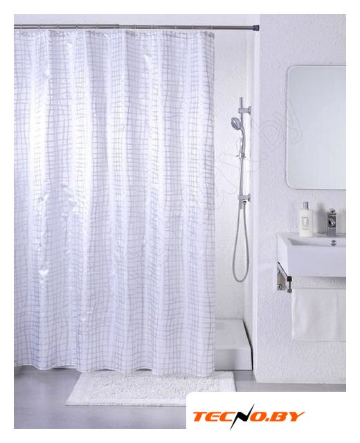 форма прямоугольная, материал шторки полиэстер, кольца в комплекте, 180х200 см, рисунок/белый