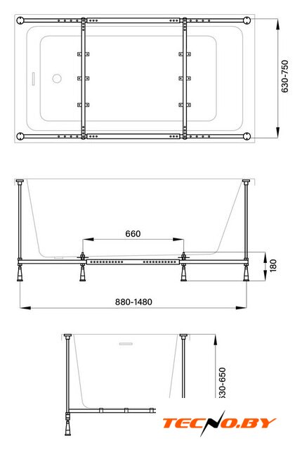 | Комплект поставки | 1 x сборно-разборный каркас для ванны1 x комплект креплений для монтажа1 х комплект анкеров для крепления ванны к стене |