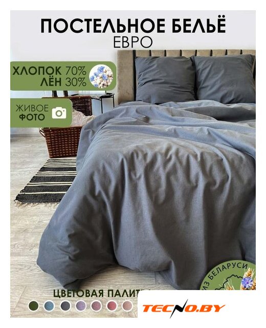 2-спальный, лен, пододеяльник 215x220 см, простыня 215x240 см, наволочка 50x70 см, сиреневый
