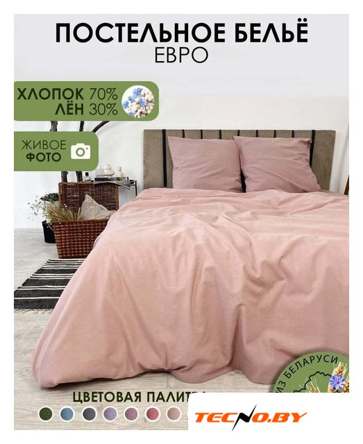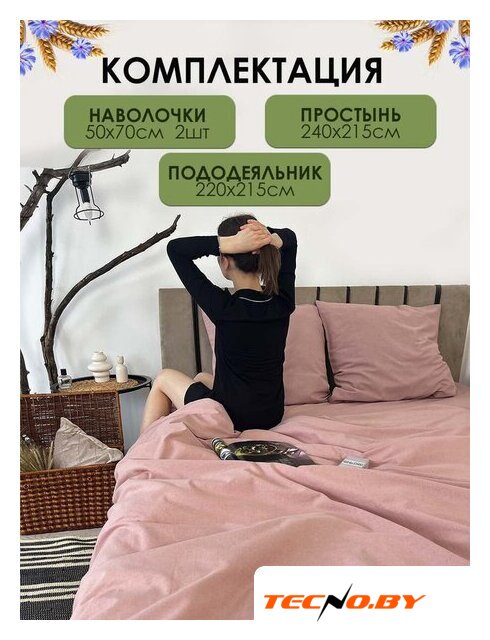 2-спальный, лен, пододеяльник 215x220 см, простыня 215x240 см, наволочка 50x70 см, сиреневый