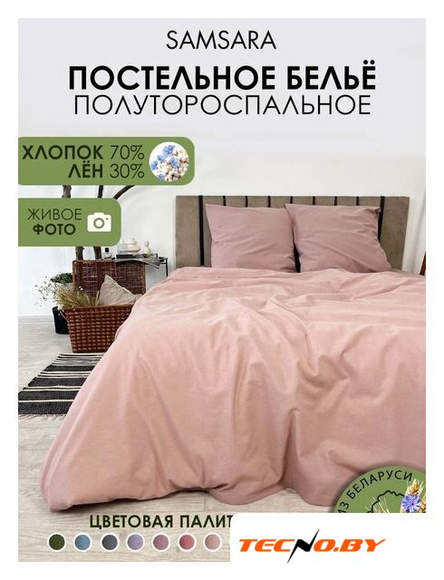 1.5-спальный, лен, пододеяльник 153x215 см, простыня 150x215 см, наволочка 70x70 см, сиреневый