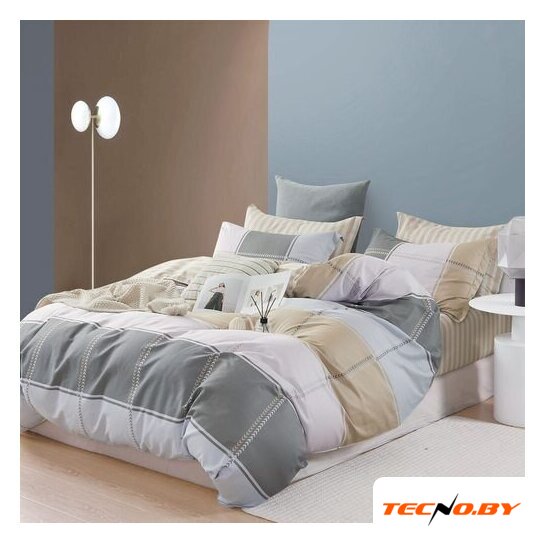 семейный, сатин, простыня 215x240 см, наволочка 70x70/50x70 см, темно-синий/бежевый/серый/белый