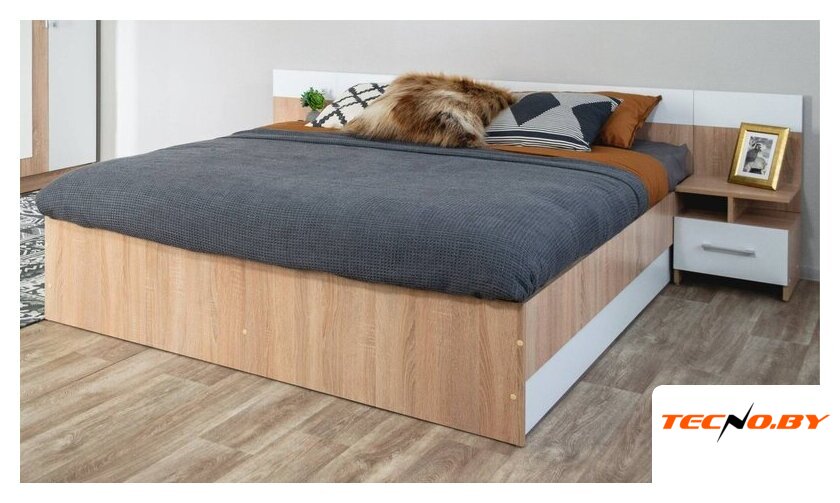 шкаф/двуспальная кровать/комод/тумба, фасад ЛДСП/зеркало/пластик (дерево светлое/дерево темное), каркас ЛДСП/ЛХДФ (дерево темное), спальное место 200x160 см