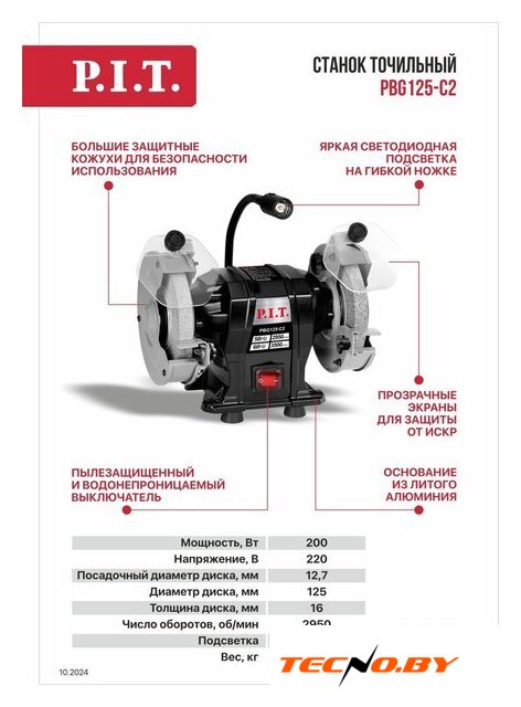 | Комплект поставки | - Станок точильный, - круг шлифовальный (2 шт), - защитный экран с креплением (2 шт), - рабочая площадка с креплением (2 шт), - коробка, - инструкция по эксплуатации. |