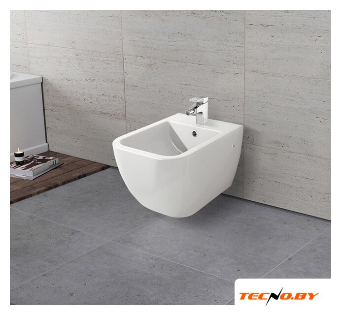 подвесной монтаж, прямоугольная чаша, горизонтальный выпуск, с отверстием под смеситель, с переливом, без крышки, 36x52x29.5 см, белый цвет