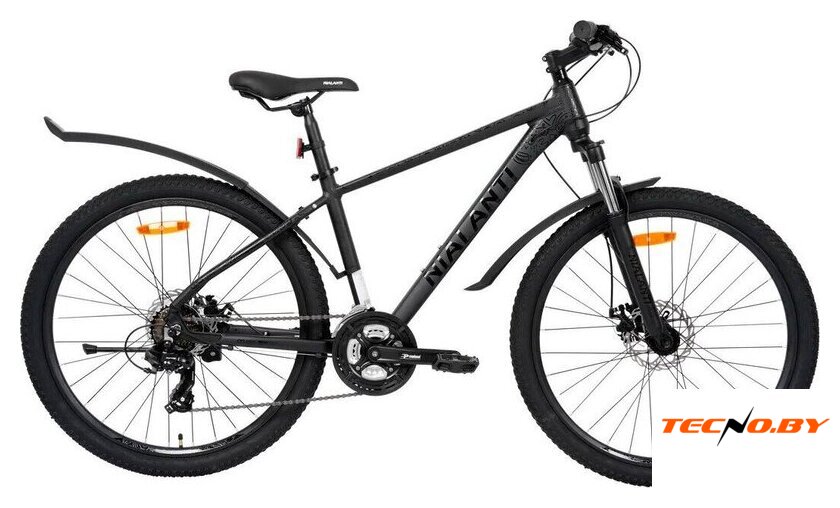 26", рама 17", горный, сталь Hi-ten, вилка амортизационная с ходом 45 мм, трансмиссия 21 скор. (3х7), переключатели: задний Shimano/передний Shimano, тормоз дисковый механический
