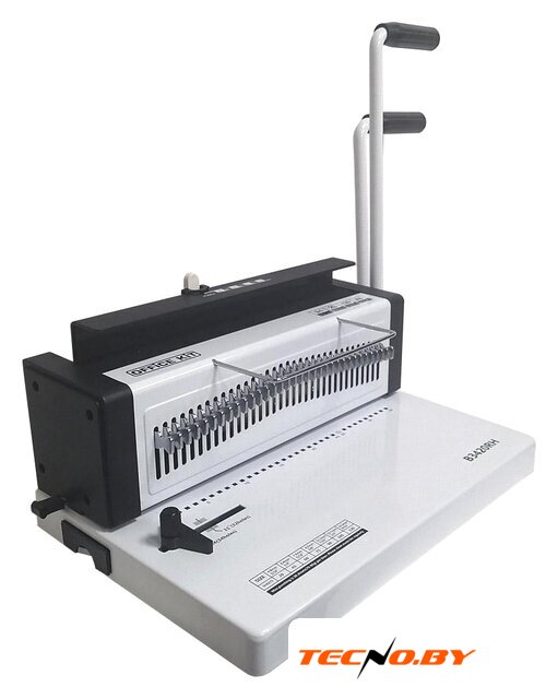пружинный механический, пластиковая пружина, толщина переплета: 500 листов, одновременная перфорация 25 листов, шаг перфорации: 2:1, вертикальная обработка, пластиковый корпус