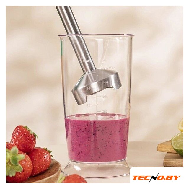 | Комплектация | блендер, мерный стакан 0.5 л, венчик для взбивания, измельчитель, насадка-блендер |