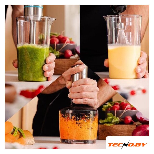| Комплектация | мерный стакан (800 мл), насадка-блендер, венчик, измельчитель |