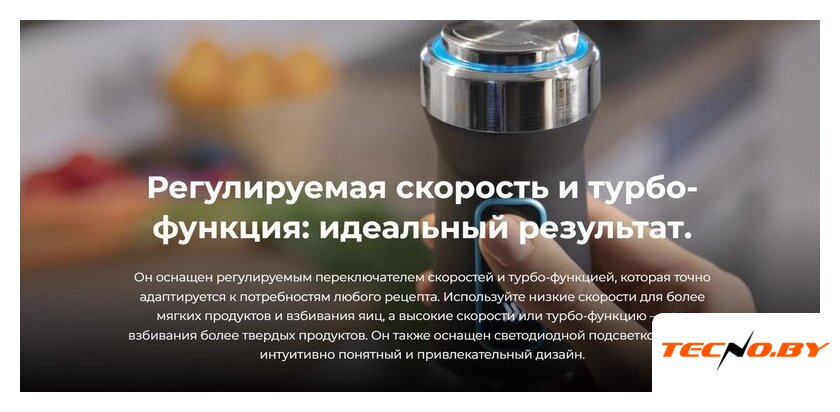 | Функциональные особенности | защита от разбрызгивания; система Fix Plus для легкой смены аксессуаров; покрытие Soft Touch; светодиодный индикатор работы |