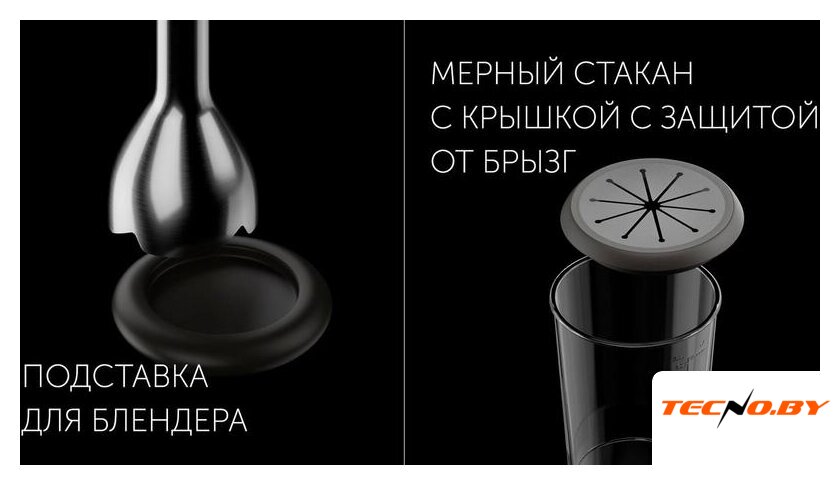 | Комплектация | Насадка блендера и венчик из нержавеющей стали.Подставка для блендера.Крышка для стакана с защитой от брызг.Чаша измельчителя объемом 0,5 л.Мерный стакан объемом 0,7 л. |