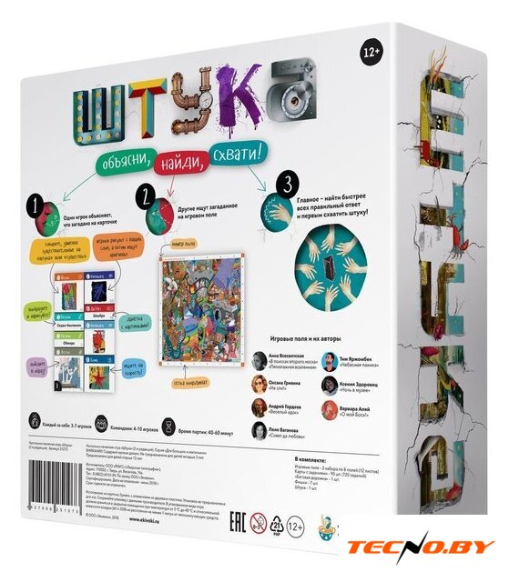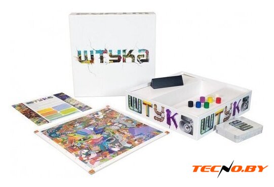 | Комплектация | - 24 игровых поля- 90 карт с заданиями (720 заданий)- счетчик очков- 7 фишек- та самая Штука- правила |