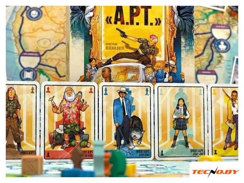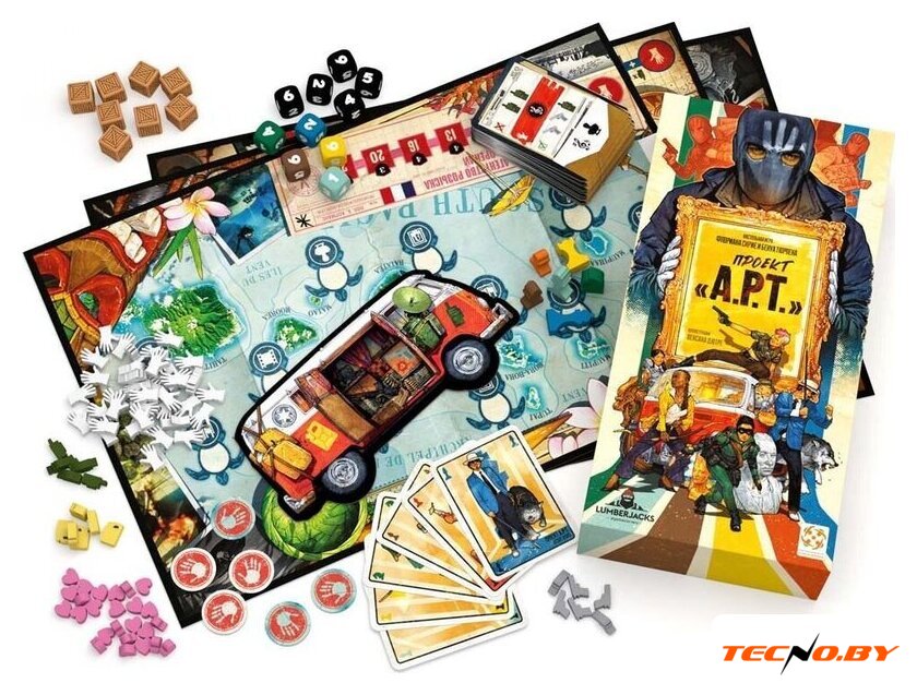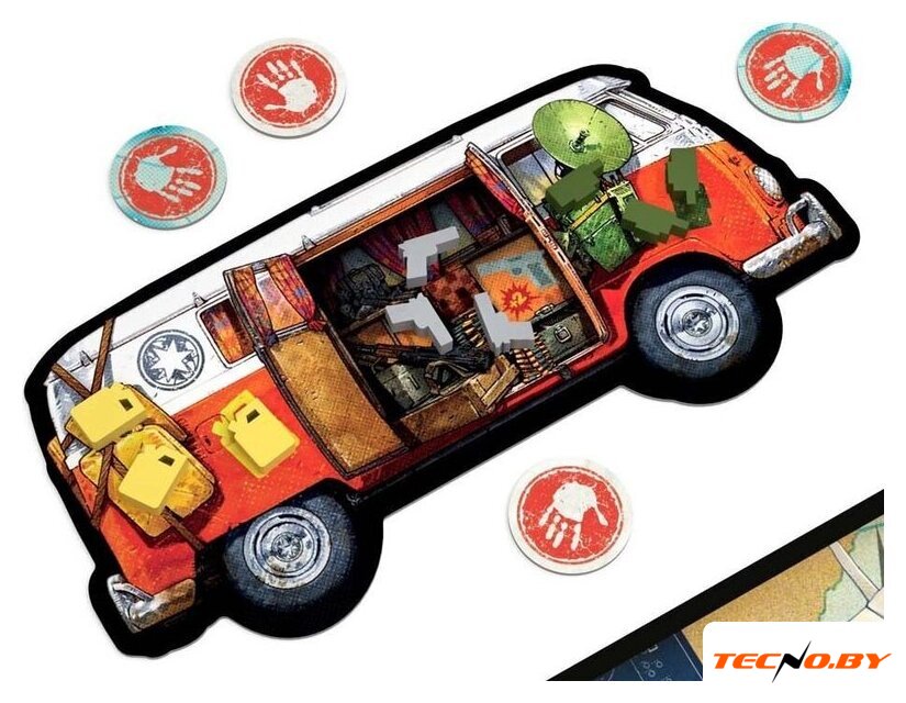 Комплектация | 1 игровое поле, 72 карточки миссий, 1 финальная карточка, 5 кубиков союзников, компоненты игроков (6 фишек персонажей, 6 кубиков персонажей, 6 карточек персонажей, 6 жетонов топлива, 6 жетонов раций, 6 жетонов орудия, 25 жетонов здоровья, 4 жетона произведений искусства, 40 фишек агентов «Белой руки», 6 маркеров потерянного города, 1 планшет фургона, правила игры |