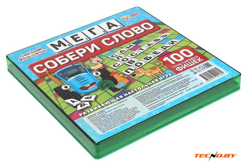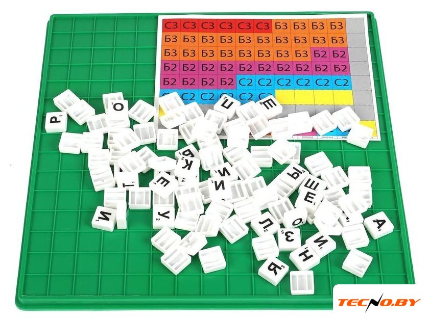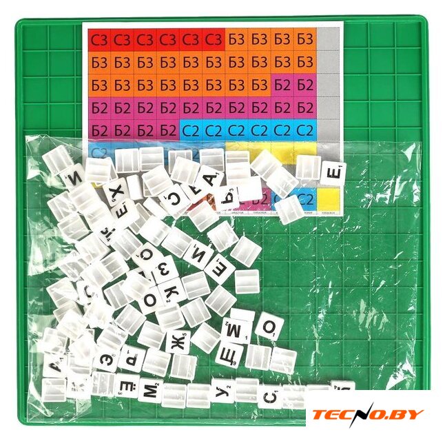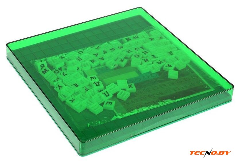 | Комплектация | - пластиковая коробка с игровым полем внутри - 100 игровых фишек с буквами |
