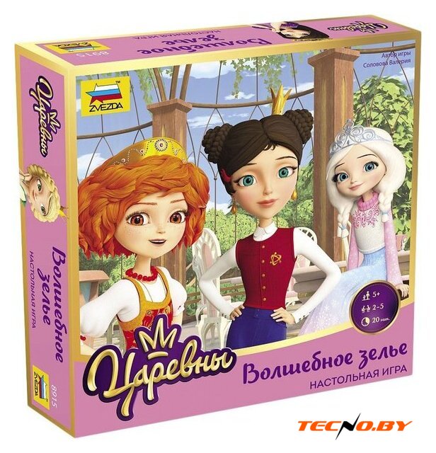 | Комплектация | - Правила игры- Игровой кубик- Игровое поле - Фишки царевен – 5 шт- Планшеты игроков – 5 шт- Жетоны зелий и ингредиентов - 50 шт |