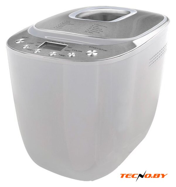 | Перечень режимов работы | «Основной хлеб», «Французский хлеб», «Цельнозерновой хлеб», «Быстрый хлеб», «Сладкий хлеб», «Дрожжевое тесто», «Хлеб без глютена», «Кекс», «Сэндвич», «Молочный хлеб», «Бездрожжевое тесто», «Выпечка» |