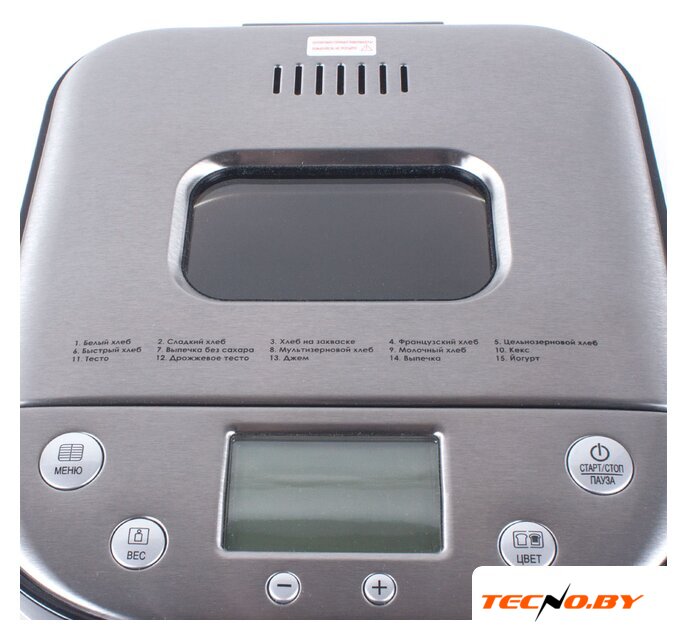 | Основные программы | французский багет, кекс, сладкая выпечка, варенье, йогурт, белый хлеб, замес теста, цельнозерновой хлеб |