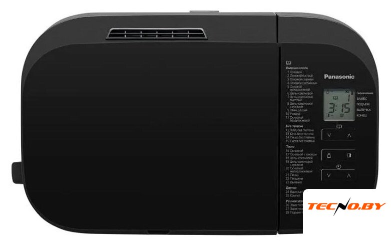 | Перечень режимов работы | Авто меню (Хлеб):1. Основной2. Основной быстрый3. Основной с изюмом4. Основной с добавками5. Основной малодрожжевой6. Цельнозерновой7. Цельнозерновой быстрый8. Цельнозерновой с изюмом9. Французский10. Ржаной11. Основной бездрожжевойАвто меню (Без глютена):12. Хлеб без глютена13. Кекс без глютена14. Пицца без глютена15. Паста без глютенаАвто меню (Тесто):16. Основной17. Основной с изюмом18. Цельнозерновой19. Цельнозерновой с изюмом20. Основной малодрожжевой21. Пицца22. Пельмени23. ВыпечкаАвто меню (Другое):24. Варенье/Джем25. КомпотАвто меню (Ручное управление):26. Замес теста для кекса27. Замес теста для хлеба28. Подъем теста |