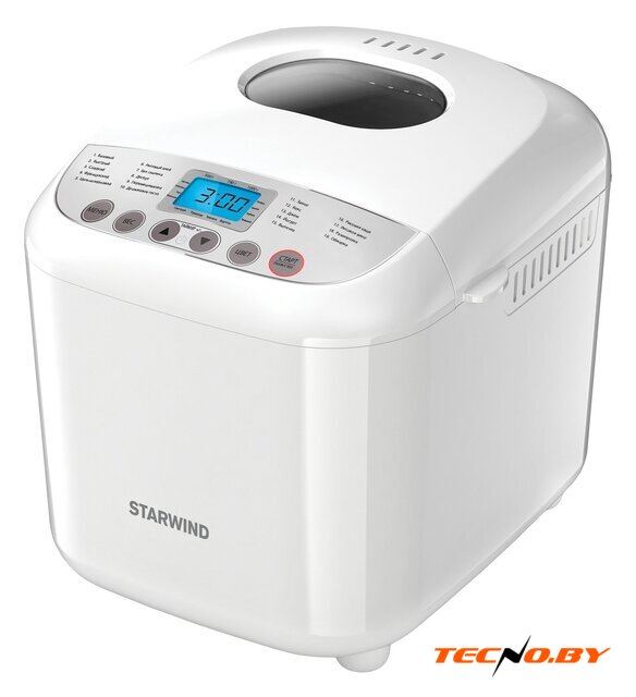 | Перечень режимов работы | 1. Базовый2. Быстрый3. Сладкий хлеб4. Французский хлеб5. Цельнозерновой хлеб6. Рисовый хлеб7. Безглютеновый хлеб8. Десерт9. Перемешивание10. Дрожжевое тесто11. Замес12. Кекс13. Джем14. Йогурт15. Выпечка16. Рисовое тесто17. Рисовое вино18. Разморозка19. Обжарка |
