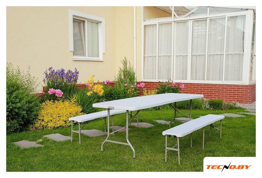 стол со стульями, алюминий/пластик, максимальная нагрузка 100 кг, ручка для переноски, белый цвет, 120x60x70 см