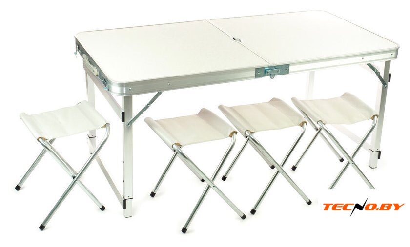 стол со стульями, алюминий/пластик, максимальная нагрузка 100 кг, ручка для переноски, белый цвет, 120x60x70 см