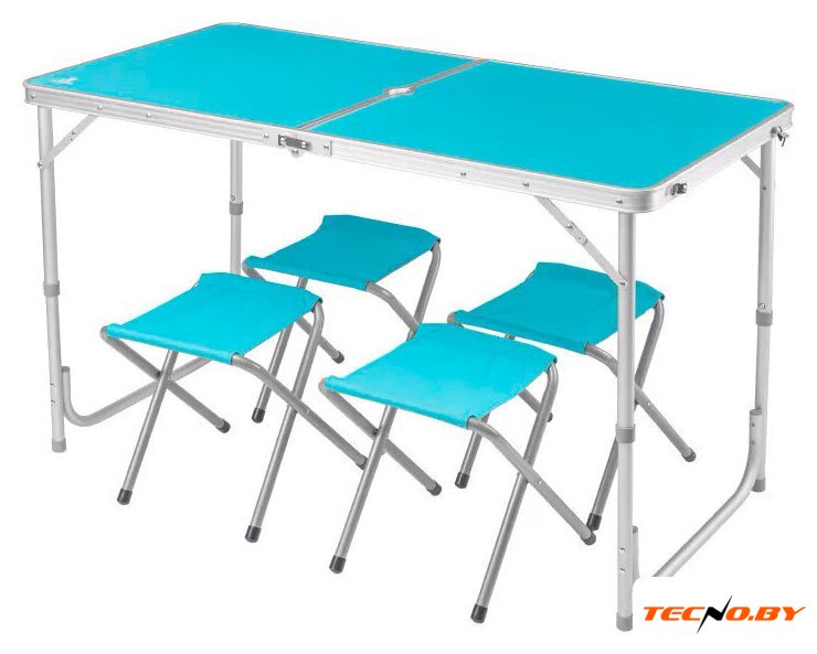 стол со стульями, алюминий/пластик, максимальная нагрузка 100 кг, ручка для переноски, белый цвет, 120x60x70 см