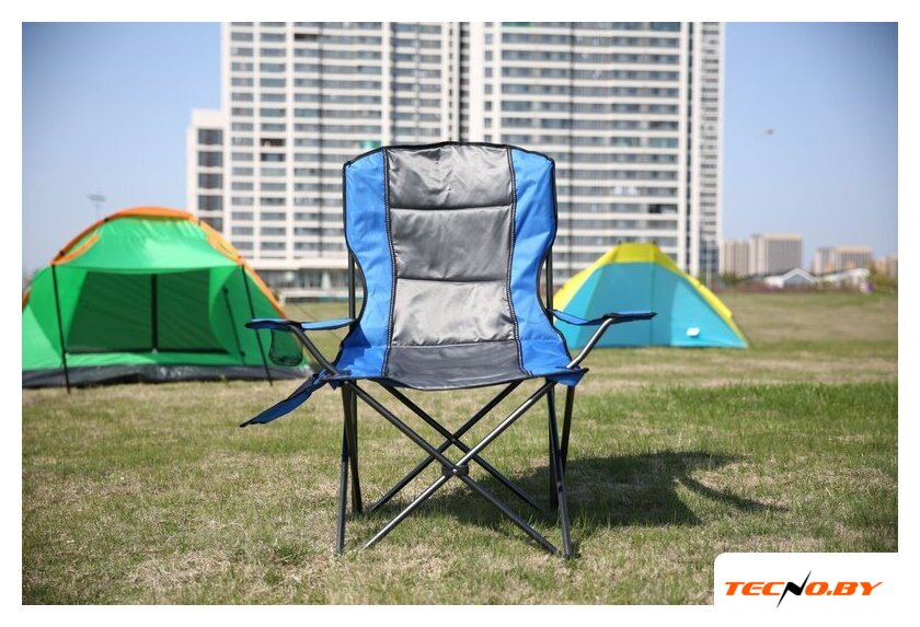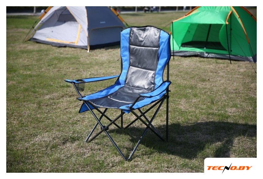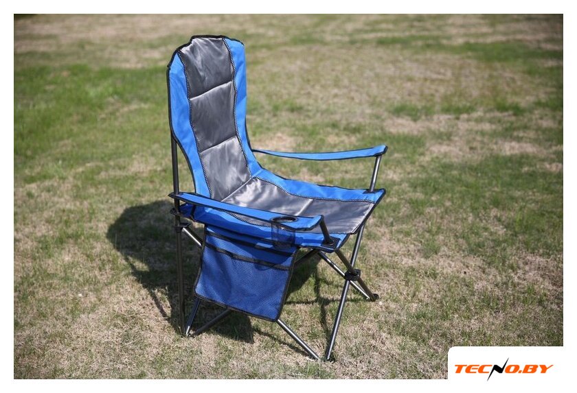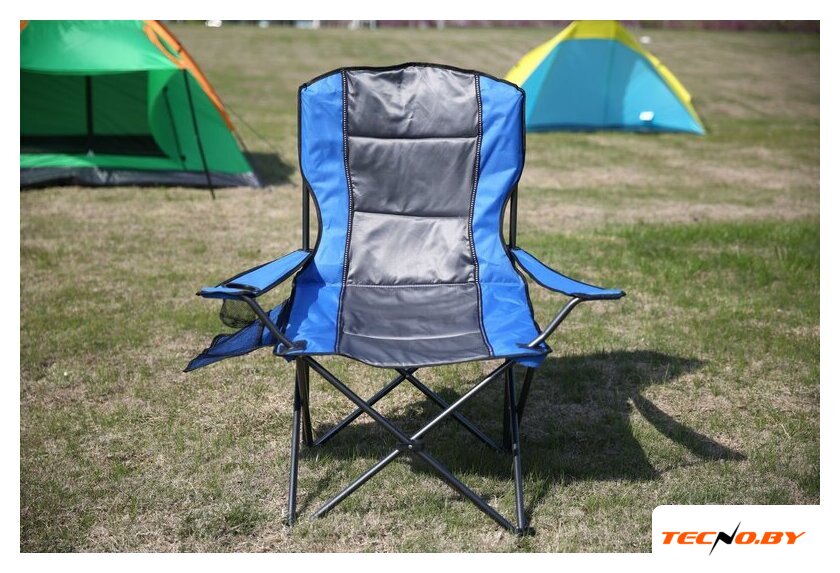 кресло, сталь/полиэстер, подстаканник, серый/синий цвет, 54x54x90 см