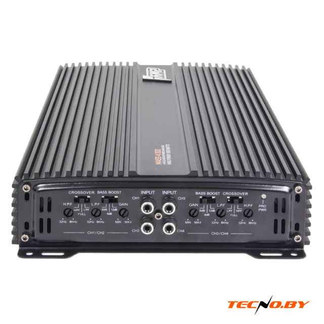 100 Вт×4 (4 Ом), 10–30000 Гц, сигнал/шум: 92 дБ, коэффициент гармонических искажений: 0.15%