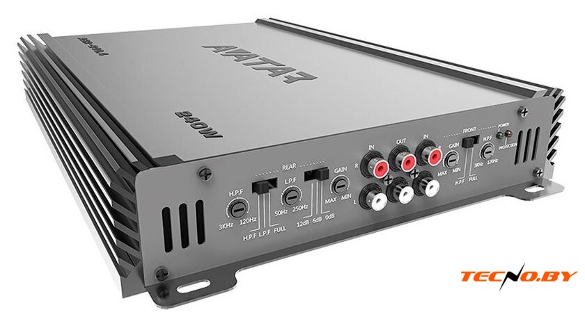 100 Вт×4 (4 Ом), 10–30000 Гц, сигнал/шум: 92 дБ, коэффициент гармонических искажений: 0.15%